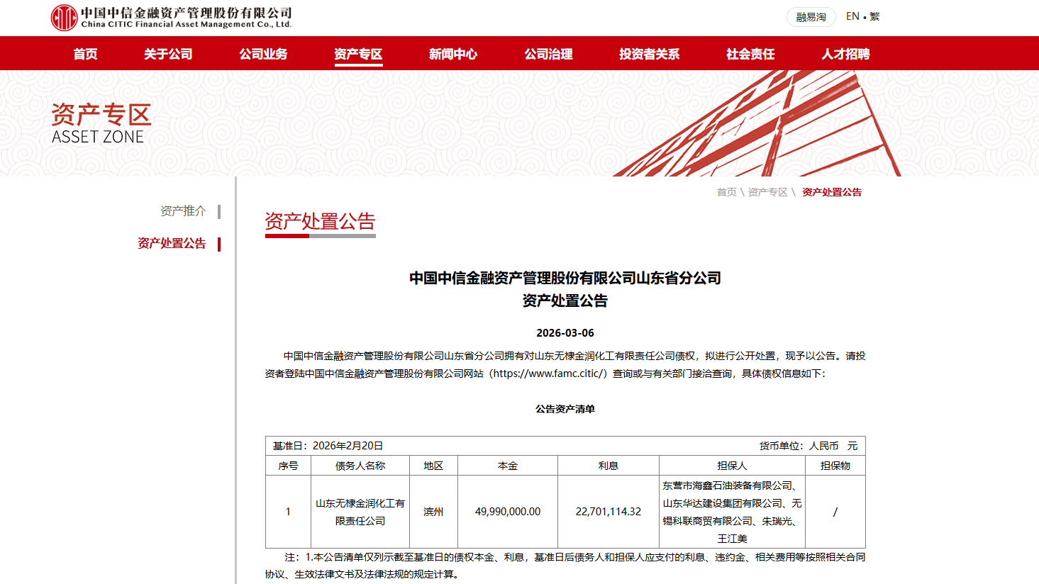 速豹财经| 超7270万元!山东无棣金润化工有限责任公司债权被公开处置